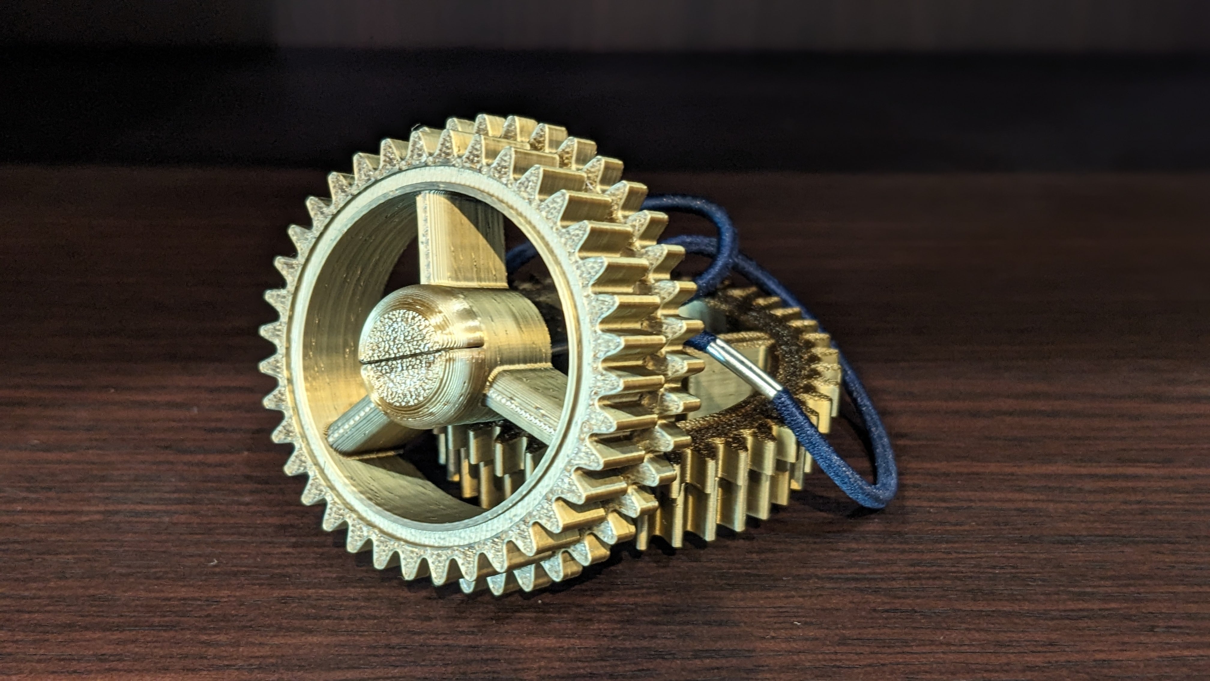 真鍮(しんちゅう)のような重厚な質感を放ちますが、実はこれ、ましろの機体部品を出力しているものと同じ3Dプリンタで製造された、軽量な樹脂製パーツ(シルクPLA製)です。